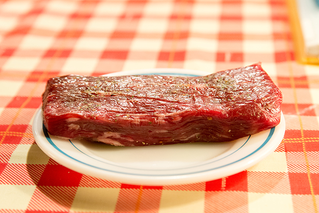 最後はステーキの燻製。前回の森マキでは薄いステーキでしたので、今回はちょっと厚めのステーキ