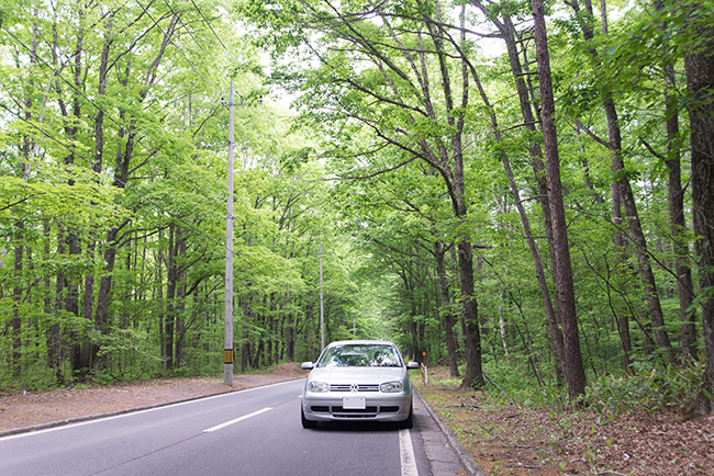 道路沿いの木々も瑞々しくて思わず止まって写真を撮りたくなります。