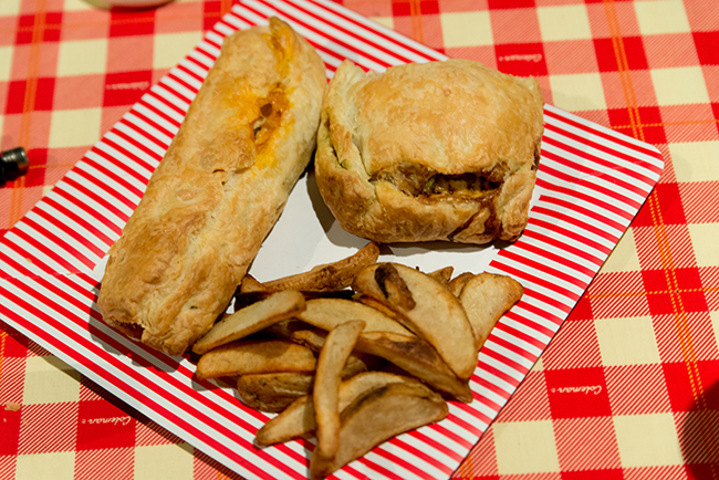 夕飯は時間と手間を掛けずに美味しいメニューということで夕飯にもソーセージパイとレトルトのハンバーグとピーマン+チーズを包んだハンバーグパイにポテトフライ、リブロースステーキ。