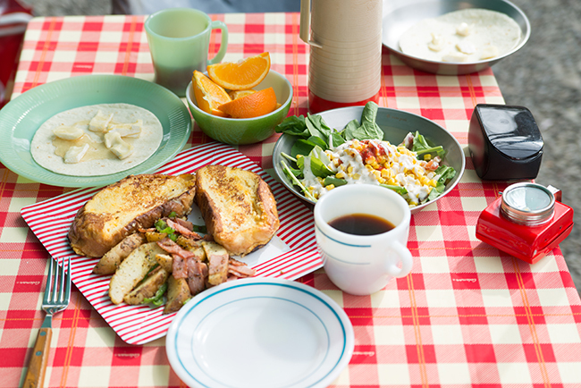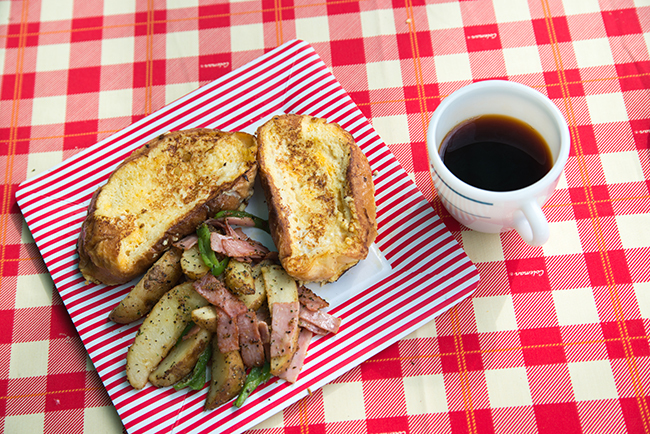 朝食はソフトバケットを使ったフレンチトーストにジャーマンポテト