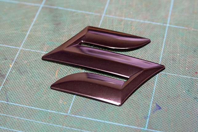 失敗するかもしれないのでヤフオクでユーズドのSエンブレムを500円で落札してそれを加工しました。因みにスズキのSマークは大中小とあってハスラーのリアは中(8.5cm)、フロントは大だそうです。エブリイのリアに使われているSサイズにしても良かったかもしれません。