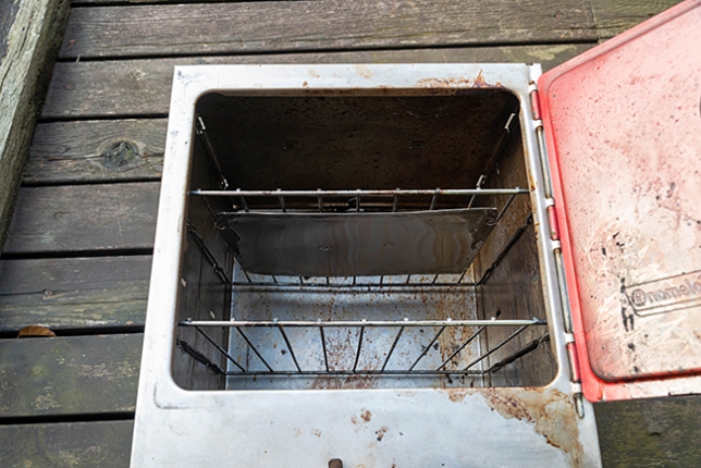 キャンプオーブンに設置した状態です。棚網を2枚着けるときは横にして着けると楽です。隙間なくアルミホイルで塞ぐともっと効率よくなります。