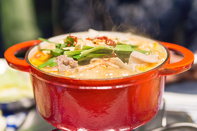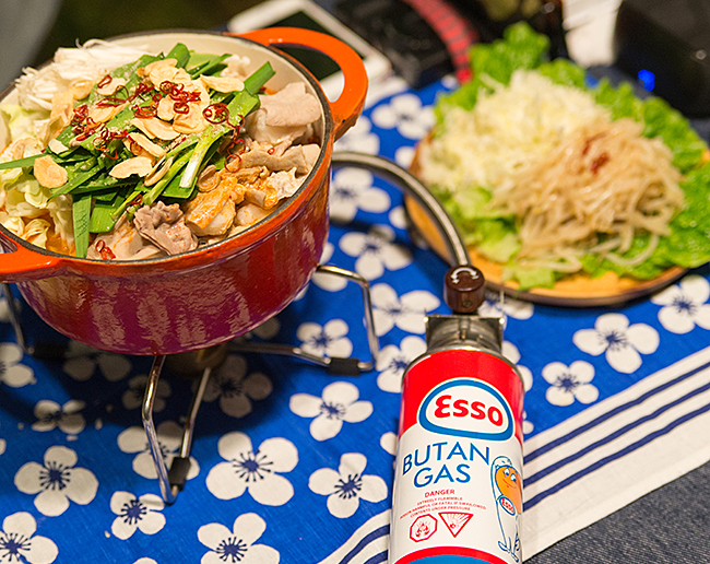 夕飯はもつ鍋。寒いときには一番です。Verryfoods尾張屋で買ったモヤシのナムルも作りました。