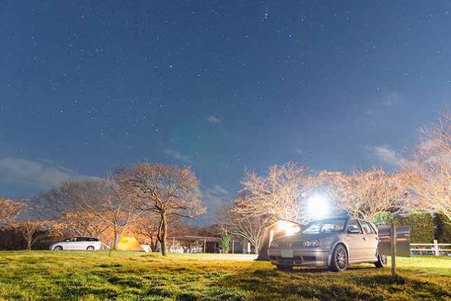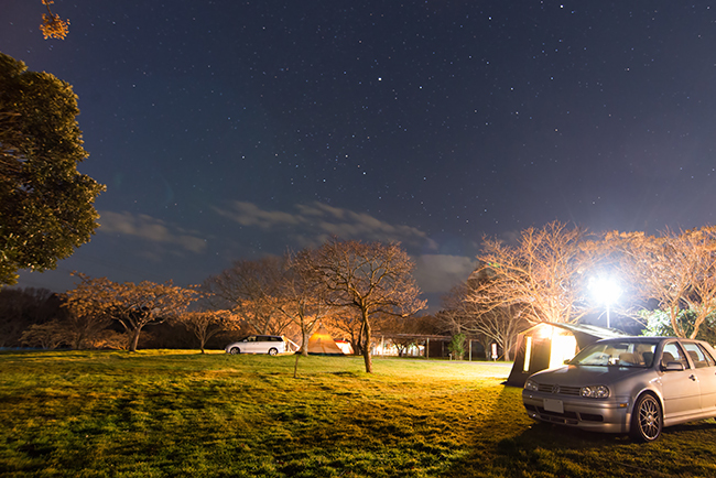 キャンプ場の常夜灯が目立ちますが、星空写真よりもこんなミックス光源の景観写真の方が好きだなぁ