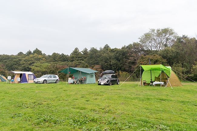 今回は一番奥の左寄りに設営しました。土曜日の昼間は半袖でも良いくらいの気温でした。