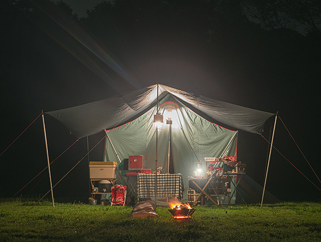 そのあと、場内を散歩してたらキャンプ場ではそう見る事はないんじゃないかと思う巨大なタープを張ってる方々がいらっしゃいました。