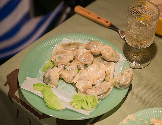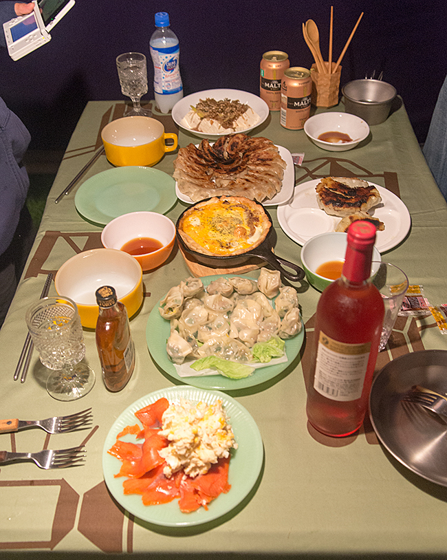 ゴードさんはキャンプ場で具から手作りした蒸し餃子。