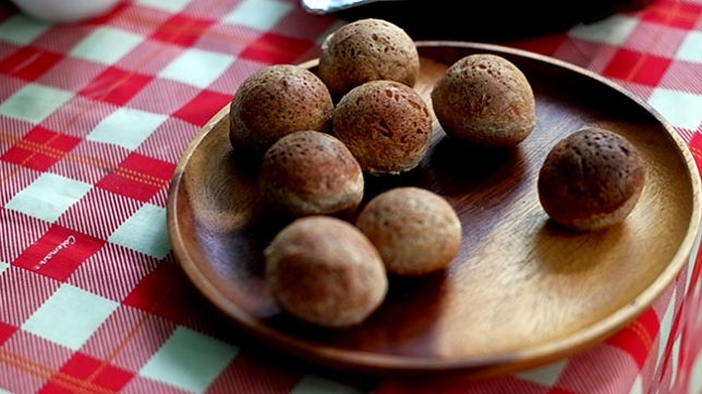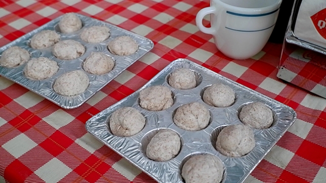 DAISOで3枚組で100円で売られているアルミ箔のたこ焼きプレートを使って丸いたこ焼きみたいなパンを作りました。