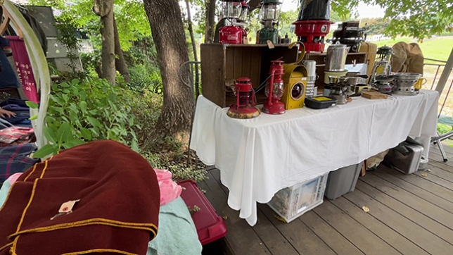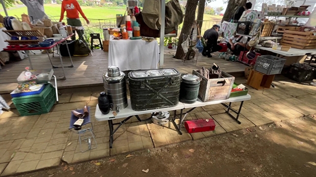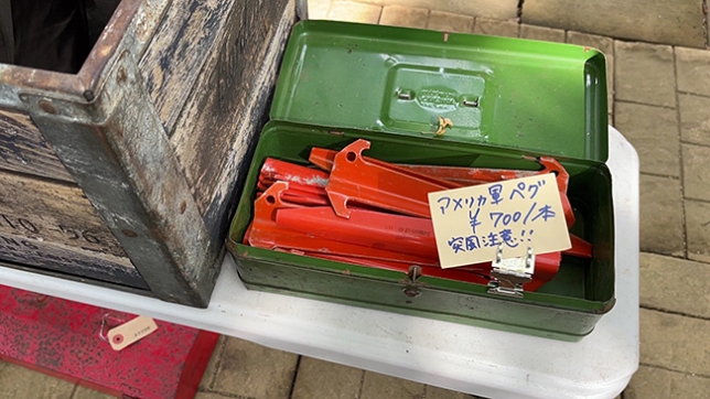 キャンプギアを多く出品されていたのはガジェットモードさんとコンテナロッジさん。最近はアメリカに仕入れに行っても滞在費や輸送費がネックで大変だと話されてました。