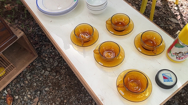 このアンバーのカップアンドソーサー400円、ちょっと迷いました。