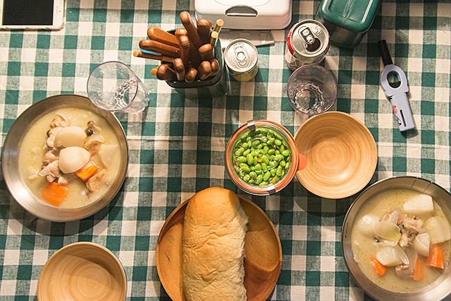 開会式の後、夕食は蕪とチキンのクリームシチューに自家製パン