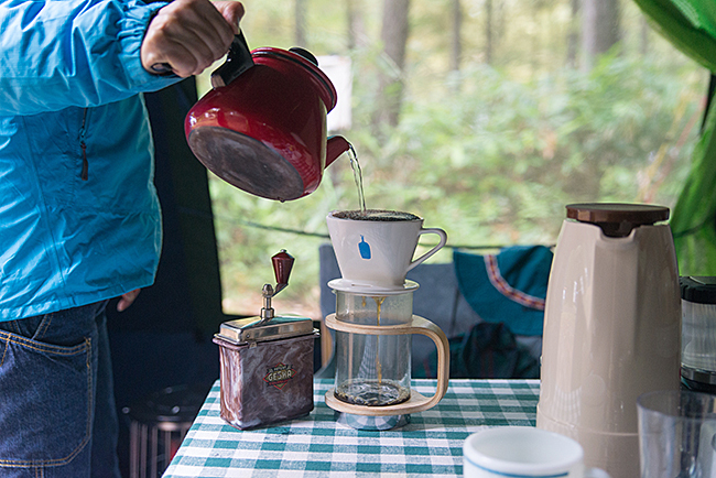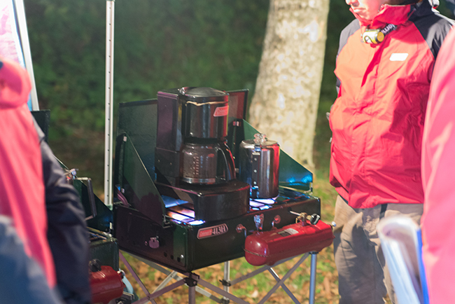 ホットワインやスープ、コーヒーが提供されましたが、このキャンピングコーヒーメーカーの作動シーンが見れたのは良かったです(笑