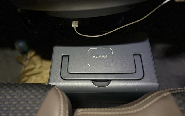 普通車の多くはこの部分はシフトやコンソールがある部分ですが、軽自動車ならではのデッドスペースとなってます。