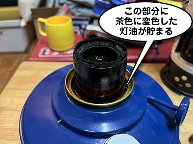 不完全燃焼した際の灯油がガイドを伝わって貯まってしまいます。