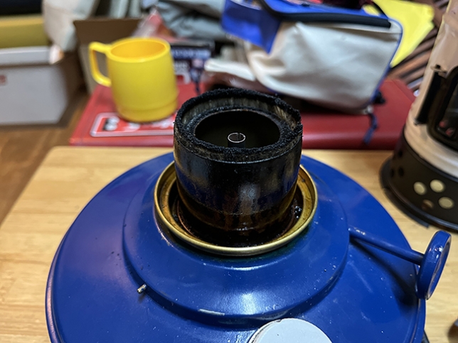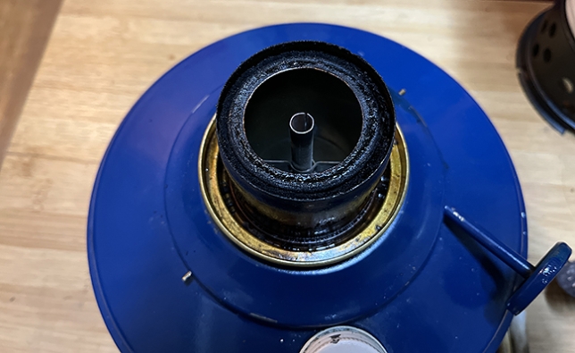 カーボンが付着して真っ黒です。このストーブは空焼きするのが難しいのでトーチで焼き切るような事をした方がよいかもしれません。