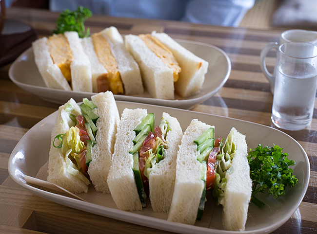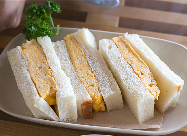 厚焼き卵をからしバターを塗ったパンに挟むだけのシンプルなタマゴサンド。
