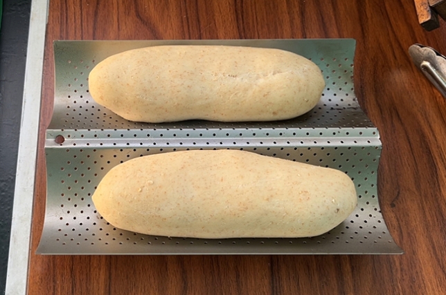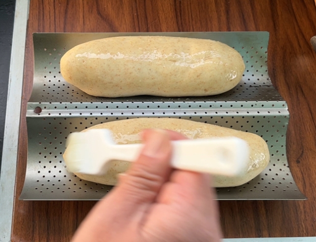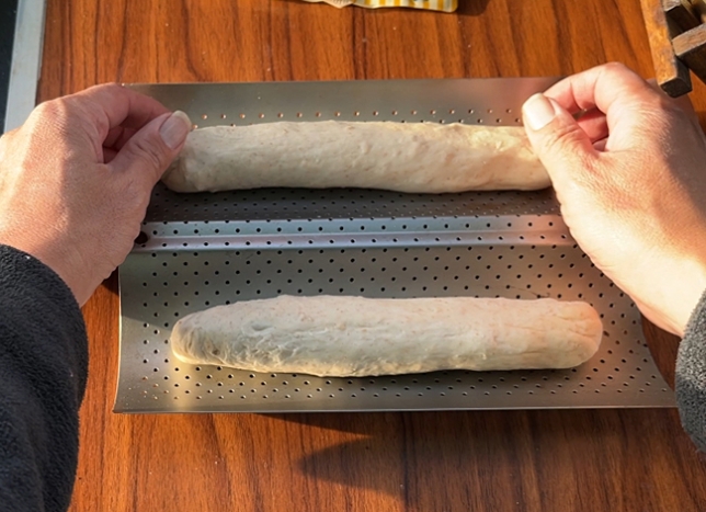 20cm位の長さに焼き上がるようにトレイに載せます。