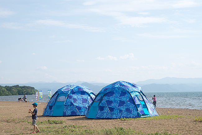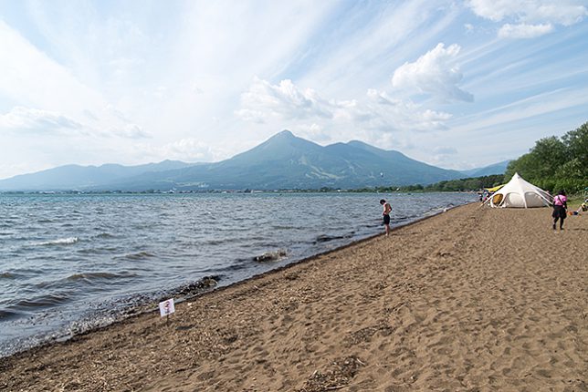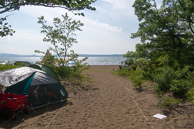 このキャンプ場は猪苗代湖畔、天神浜にあるキャンプ場で砂混じりのわりと柔らかい地面のサイトです。