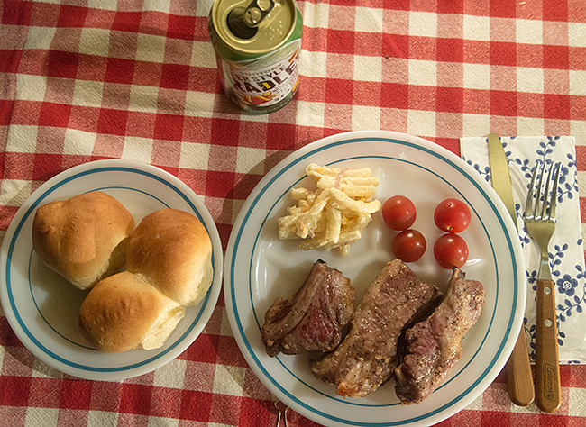 夕飯はオーブンで焼くだけのポークリブと自家製パン。