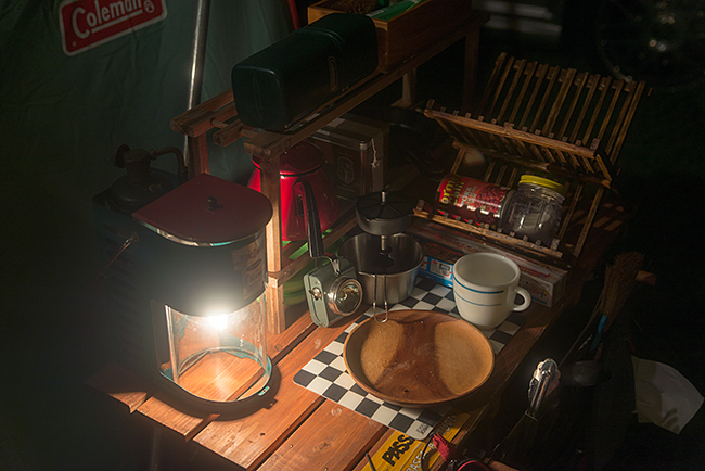 優雅だ。優雅すぎる。a-garageさんの周りだけ時の流れが異次元でしたよ(笑)。我が家ではキャンプと音楽の組み合わせってした事が無いんですが、アナログラジオから聞こえるノイズ混じりのBGMもオールドスタイルの雰囲気に合っていて素敵でした。