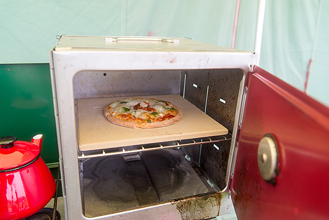 このピザストーンはあまり知られてないですが、Colemanのキャンプオーブンにシンデレラフィットなんですよ♪