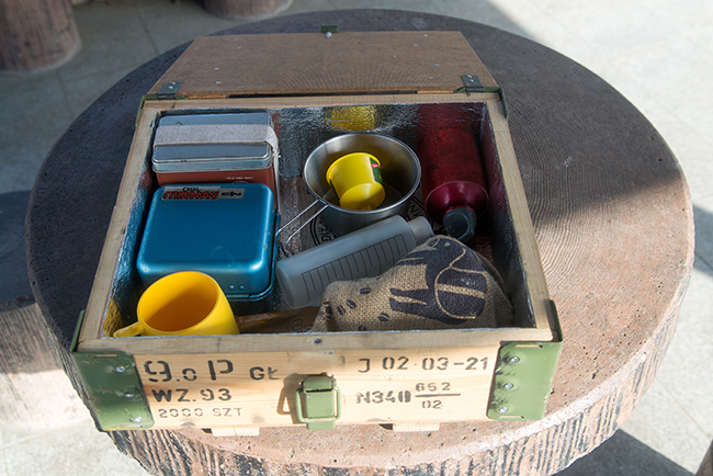 ポーランド軍の木製アンモボックスはミニマムな簡易コーヒーセットを入れて車に置きっぱなしにするのに丁度良いです。