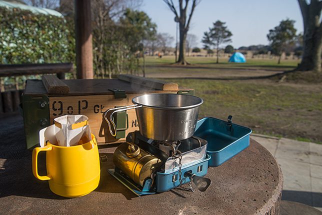 外でお気に入りの火器を使ってお湯を沸かしてコーヒーを淹れる。