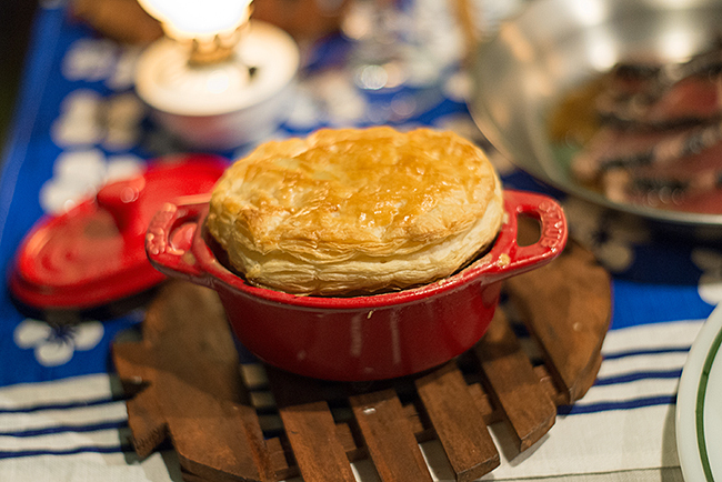 STAUBのオーバルミニココットを使ったオニオングラタンスープはパイがちょっと縮んで落下ギリギリでした(汗