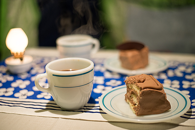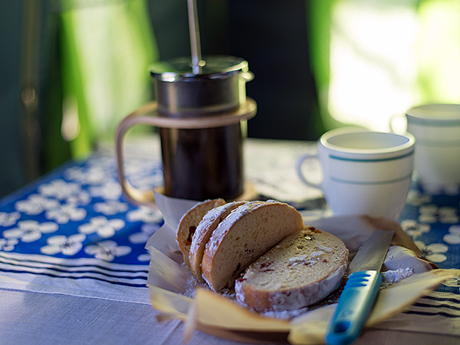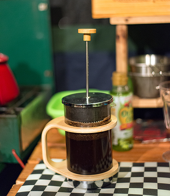 食後はフレンチプレスで淹れた濃厚なコーヒーに