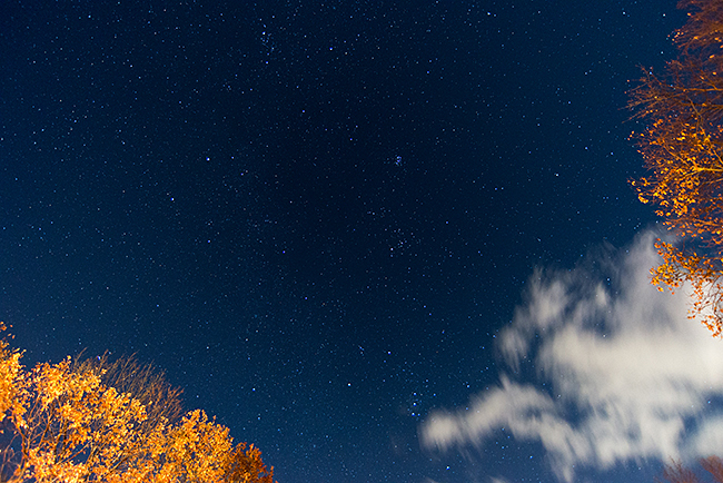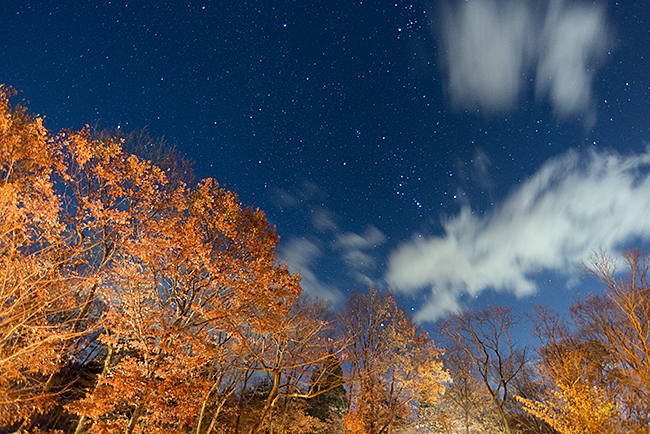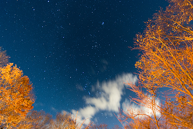 やはり期待通りの星空♪ 紅葉と重なった景観は18mmの超広角レンズで切取りました。