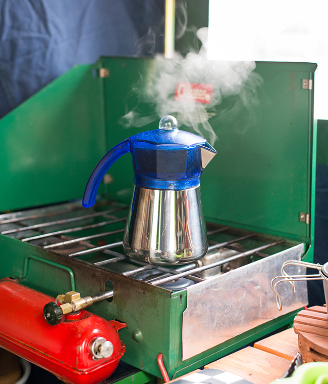 そして朝、珈琲はコンロに置いとけば自動でできるパーコレーターで♪