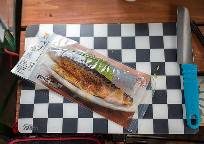 鯖はセブンイレブンの調理済み食材に胡椒をふってオーブンで温めます。