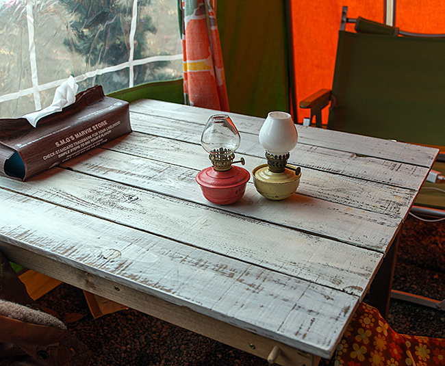 炊事場に行きながら、青い素敵なテントの中を見せていただきたいなと思っていました。