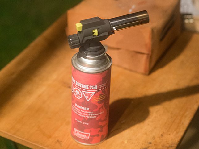 CB缶を使うギアってあまり持ち込まないのですが、秋刀魚を炭焼きするのに着火用に持ち込んだトーチであります。(使ったのは赤色迷彩のラベル)