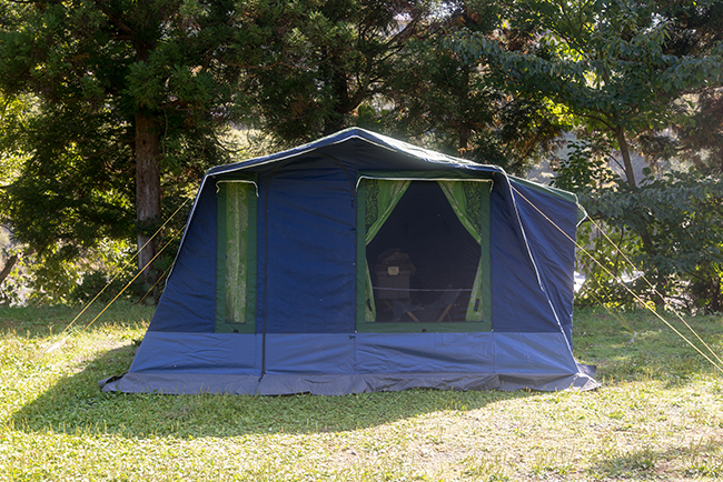 久しぶりにTHEA-5を使用。オートキャンプサイトは8m x 10m+αくらいの区画サイトです。