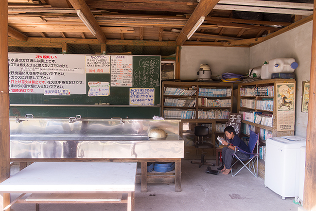キャンプ場内に日帰り温泉施設 上滝之湯があります。炊事場に漫画があったりします(笑