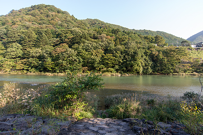 このサイトの裏側を一段下がると遊歩道がありまして、鬼怒川が流れてます。