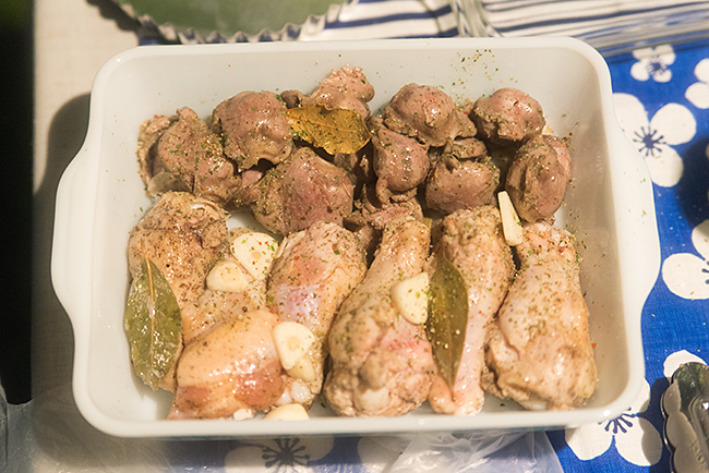 鳥の手羽元と砂肝のコンフィは前日から塩胡椒、ニンニク、ハーブで下味を着けてオリーブオイルを浸したレフを100度に調整したオーブンで1時間加熱しました。