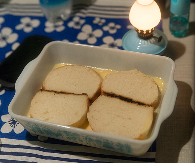 朝食用にフレンチトーストの仕込みをします。