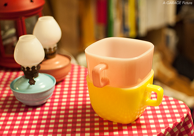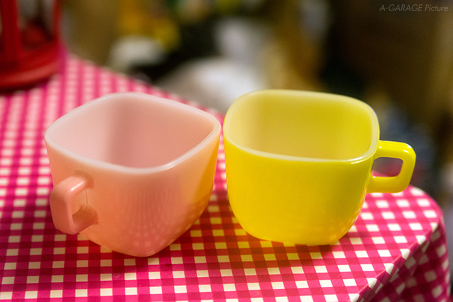 それとグラスベイクのLipton Soup Mug のイエローとピンク。これは自宅で使う用です。