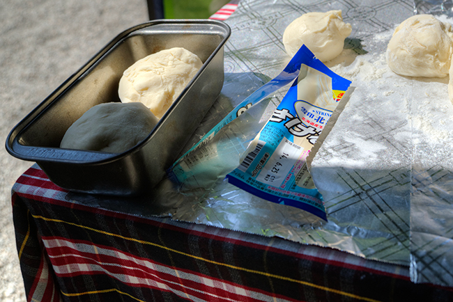 そして夕食と朝食用のパンを焼きます。今回はハーブウインナーとチーズを一緒にロールにしたものと角食パン。