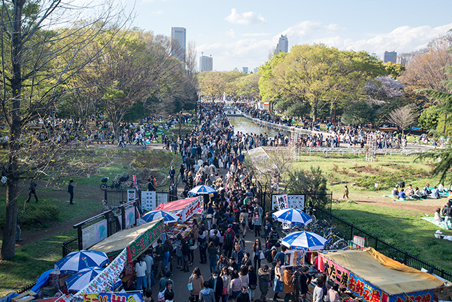 公園の中を通っていきましたが、足の踏み場もない混み具合で