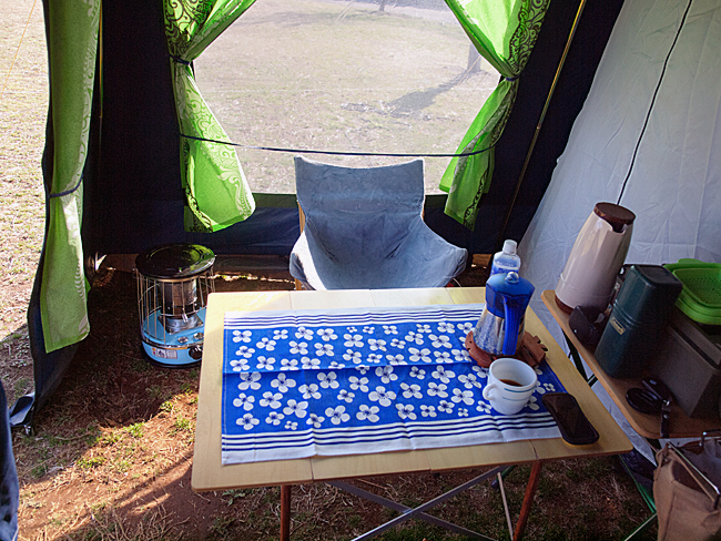 今回もTHEA-5を使用。設営は独りでも30分くらいでできるようになりました。