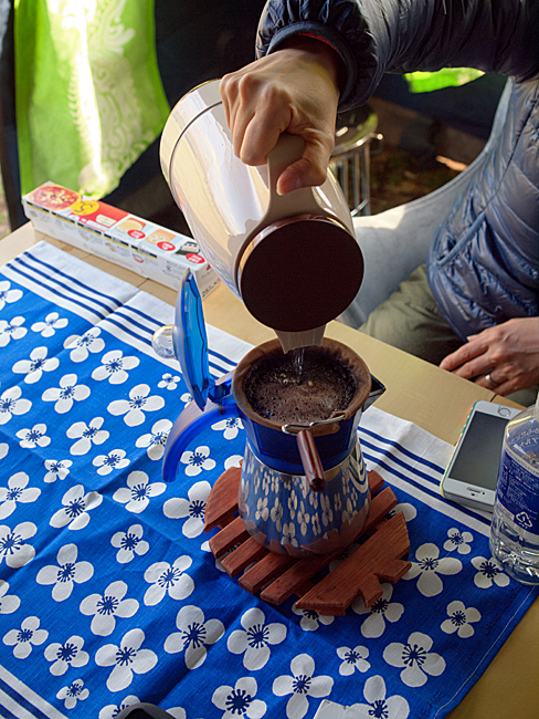 昼間は暖かいのでキッチンタオルをクロス代わりに。そして昼食を作ります。