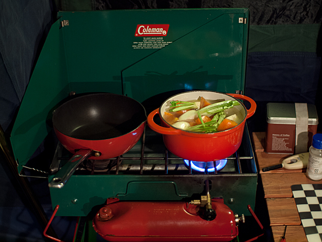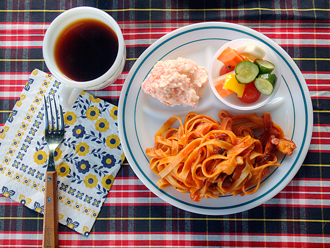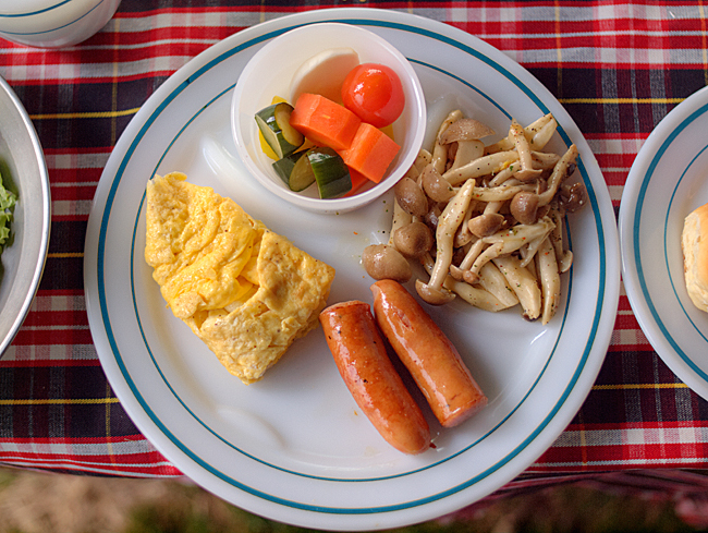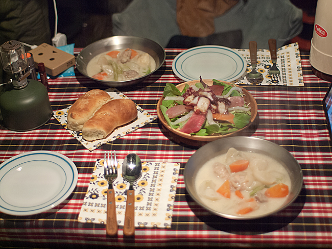キャンプらしさは全く無く、普通に食卓に出てくるようなゴハンです(笑
