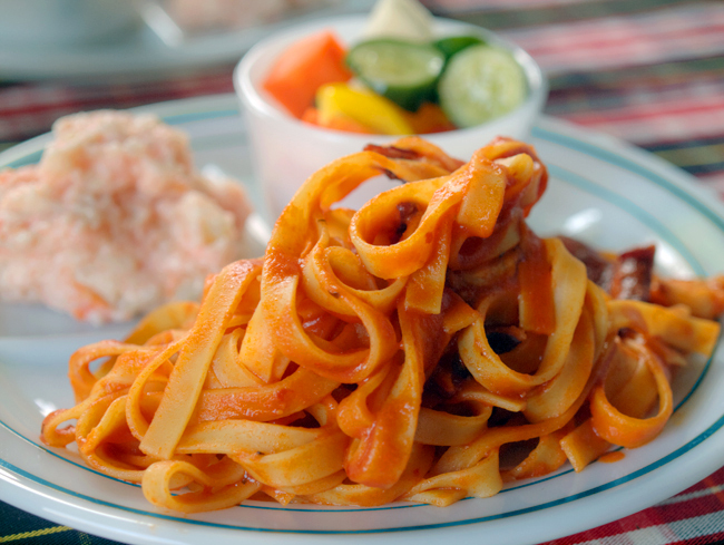 生パスタを使って蛸とレトルトのパスタソースで作りました。