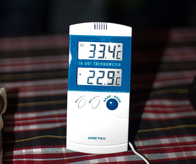 幕内は22度くらいでテーブル下は30度オーバー、最高で36度くらいでした。