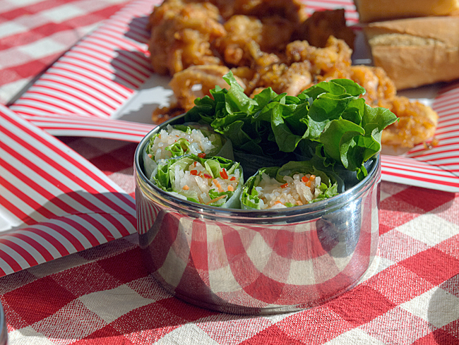 それとランチボックスにコールスローサラダと生春巻きを入れて持ってきました。