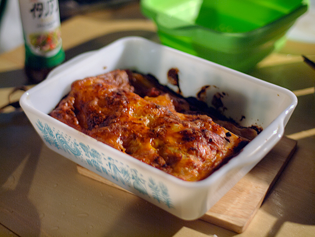 そんで、ラザニアのパスタが大量に余っていたのでラザニアも。