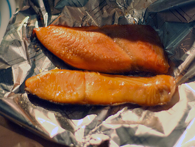 クックパーはふつうのアルミホイルと違って焼き付かずに焼けるのでキャンプでもお勧めです。